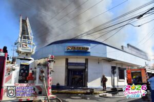 Los Bomberos Unidos hicieron intensas labores para lograr sofocar un incendio en la tienda La Curacao, sucursal León. Las llamas comenzaron a eso de las 8 de la