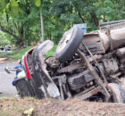 Río La Flor en Carazo se encuentra desbordado y por rebasar el puente