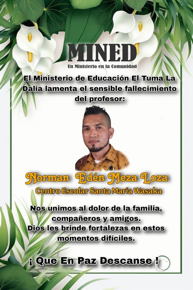 Meza Lazo, había sido trasladado por ciudadanos al centro de salud de La Dalia, de donde fue remitido al hospital César Amador Molina de Matagalpa, dónde los médicos lo estabilizaron y trasladaron a la capital por su delicado estado de salud, sin embargo, murió.