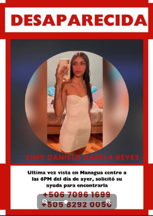 Eimy, había sido vista por última vez en la zona del 7 Sur, en Managua. La muchacha recién había terminado una relación con su marido y este se fue para Costa Rica.