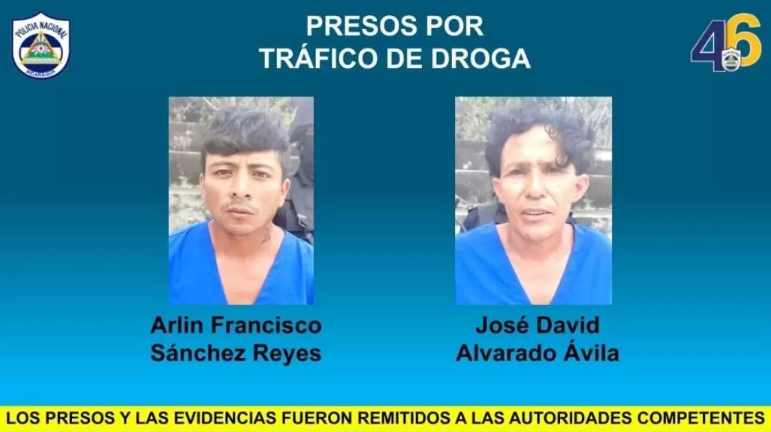 Arlin Francisco Sánchez Reyes y José David Alvarado Ávila, resultaron detenidos por la Policía del departamento de Nueva Segovia, con 132.8 libras de marihuana, en momentos de un operativo ejecutado en horas de la mañana de ayer martes.