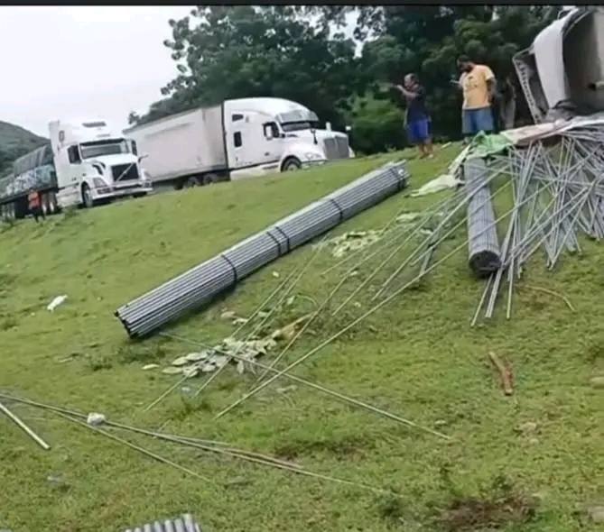 Grandes daños materiales ha dejado en horas de la mañana de este jueves, el vuelco de una rastra que transportaba hierro y perlines. El accidente ocurrió en una curva del kilómetro 115 de la carretera hacia Malpaisillo, en la Villa 15 de Julio, en el departamento de Chinandega.