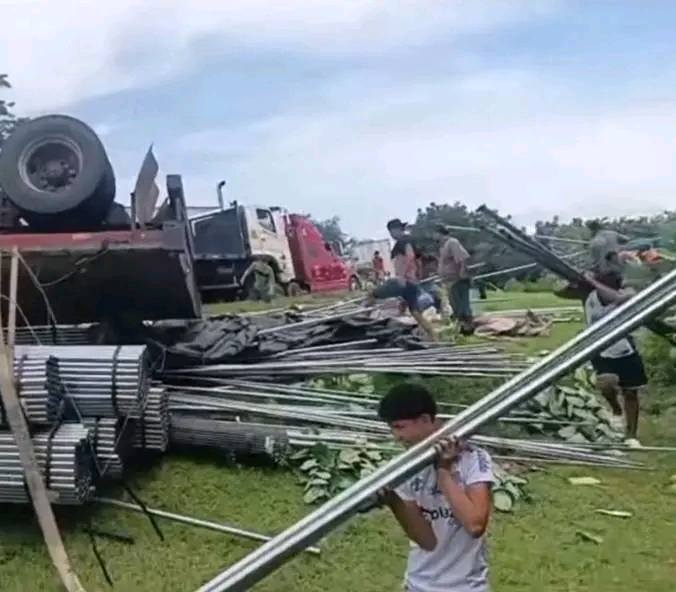 Vecinos se llevan los materiales: Rastra cargada de hierro y perlines se volca en Chinandega