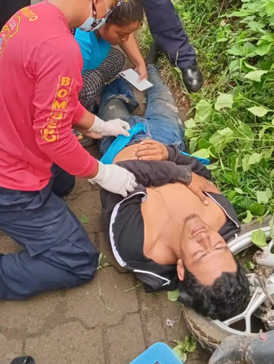 Miembros del Benemérito Cuerpo de Bomberos trasladaron al joven hacia la sala de emergencias del Hospital Regional Santiago de Jinotepe.