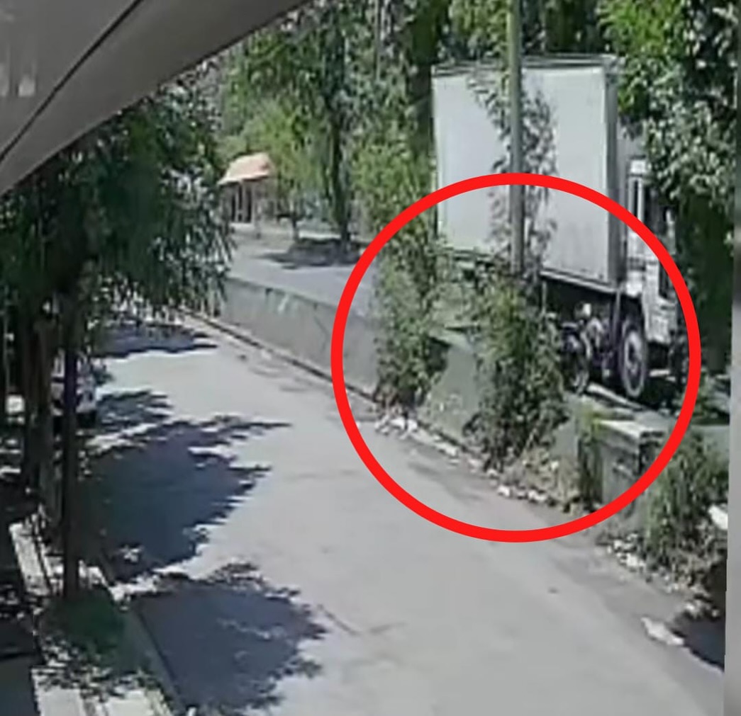 Una cámara de seguridad captó el momento cuando el camión placas MT 47-727, manejado por Jaime Robles, impactó con la parte delantera derecha la parte izquierda trasera de la motocicleta.
