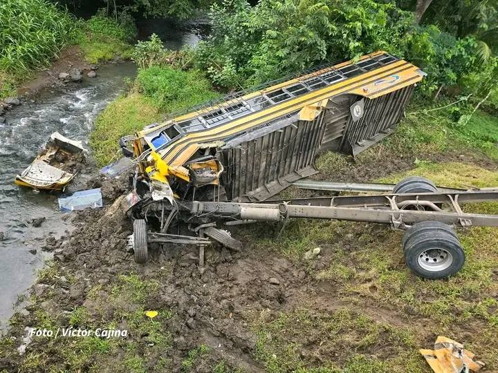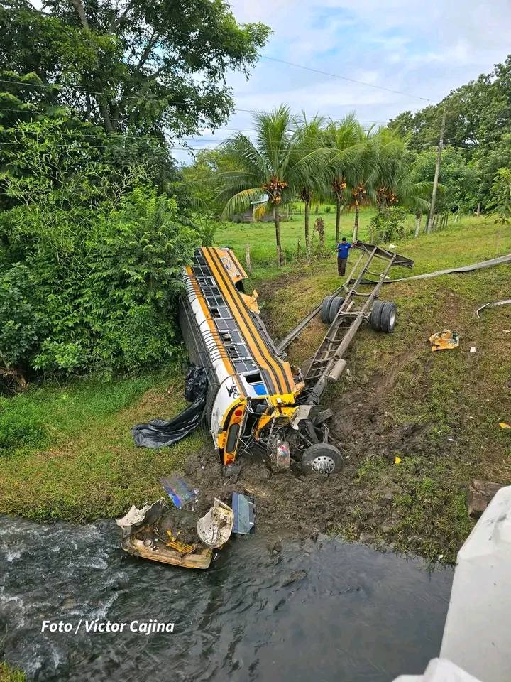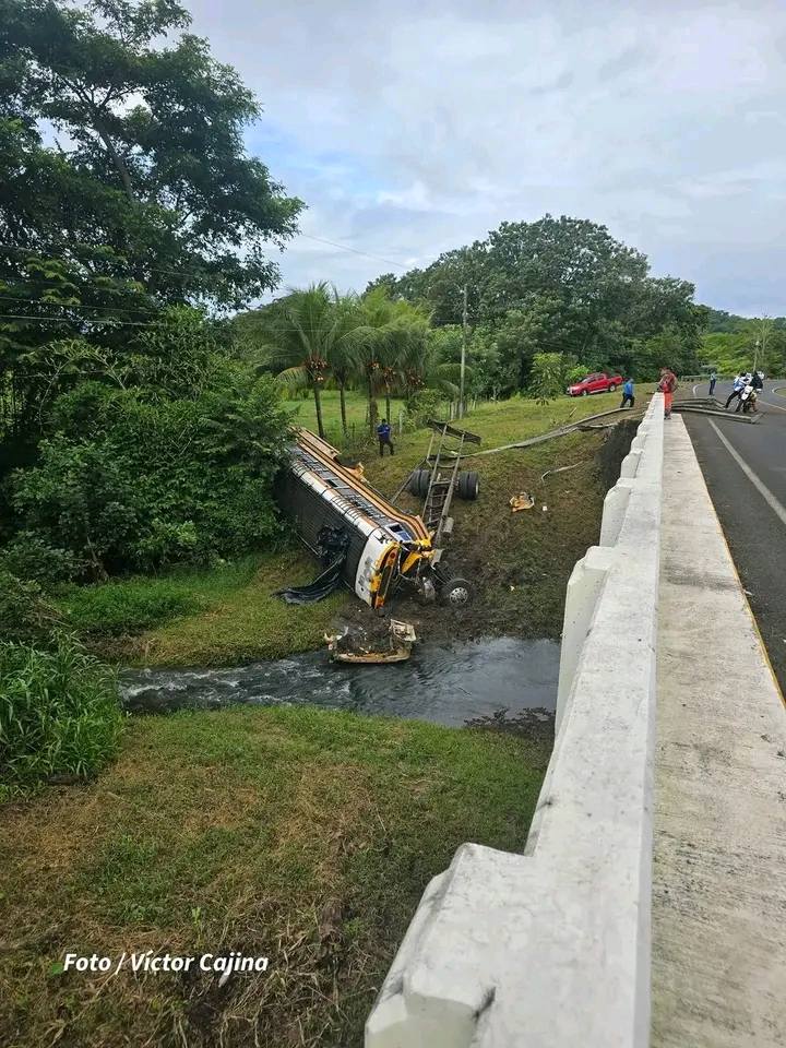 |Tras un lamentable accidente de tránsito, por lo menos 12 personas terminaron lesionadas cuando el bus e que viajaban se volcó. Este cubría la ruta Managua–San Carlos, y el incidente ocurrió en las cercanías del puente La Culebra, en el municipio de San Carlos, departamento de Río San Juan.