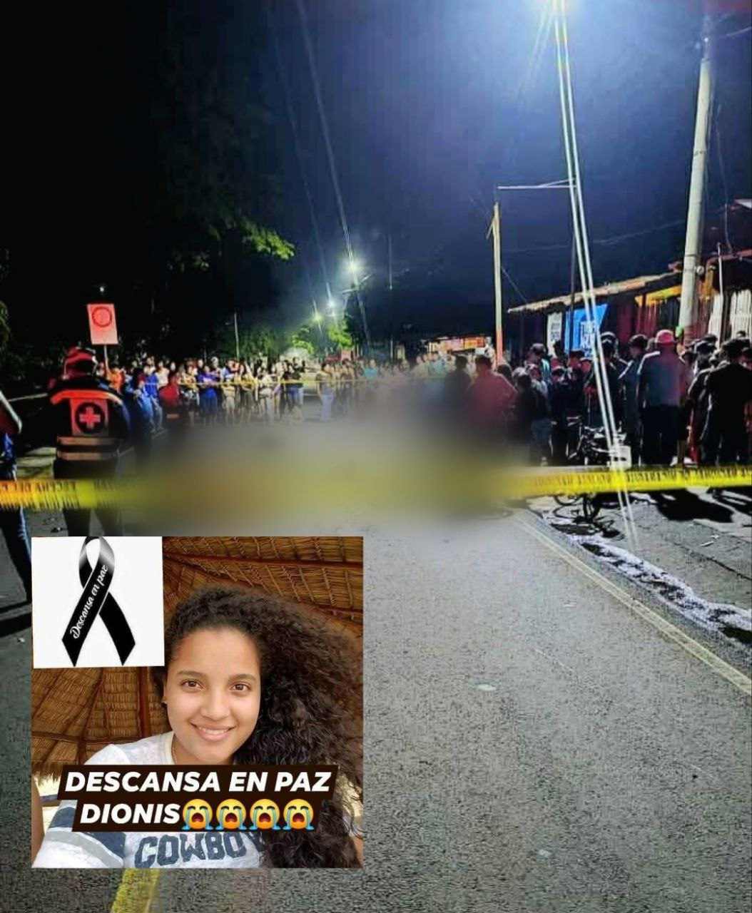 La joven de nombres Dionis Guadalupe Parrales Aburto, de 27 años, falleció a las 9:50 minutos de la noche de ayer domingo, cuando la moto que manejaba fue impactada de frente por otro motociclista que le había invadido el carril a exceso de velocidad.