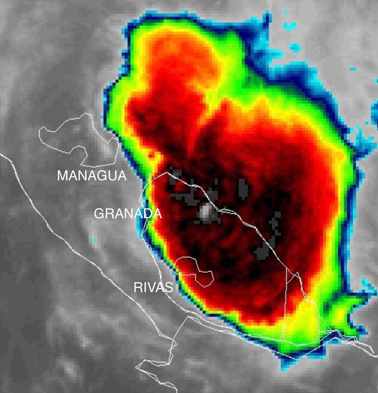 Un Complejo Convectivo de Mesoescala se esta desarrollando sobre el lago de Nicaragua desde las 9pm de este sábado 25 de octubre de los corrientes.