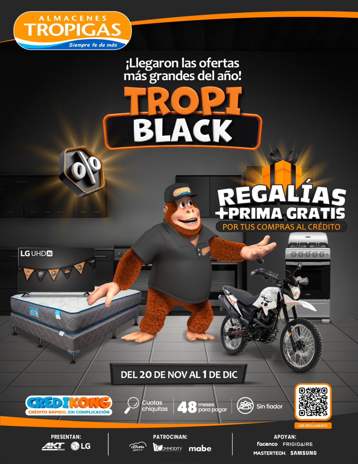 Almacenes Tropigas da inicio a su temporada más esperada del año con el Tropi Black, una explosión de descuentos y beneficios que estará disponible del 20 de noviembre al 1ero de diciembre. Durante este periodo, los clientes podrán disfrutar de rebajas desde el 10% hasta el 50% en una amplia gama de productos: refrigeradoras, cocinas, celulares, pantallas, muebles y mucho más.
