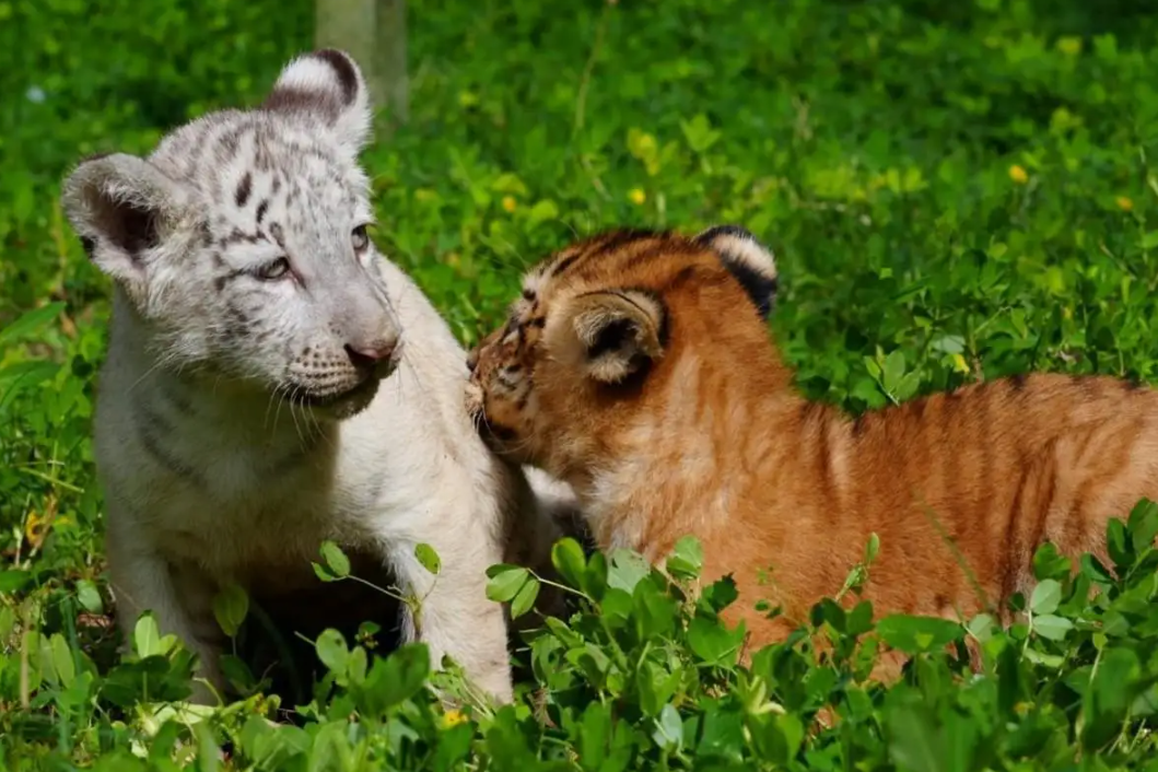 Mientras que la menor nació con un peso de 1,193 gramos y posee un color blanco, característica conocida como “leucismo”, una mutación genética recesiva que provoca la falta de pigmentación en el pelaje de los tigres, dándoles su característico color blanco con rayas negras.