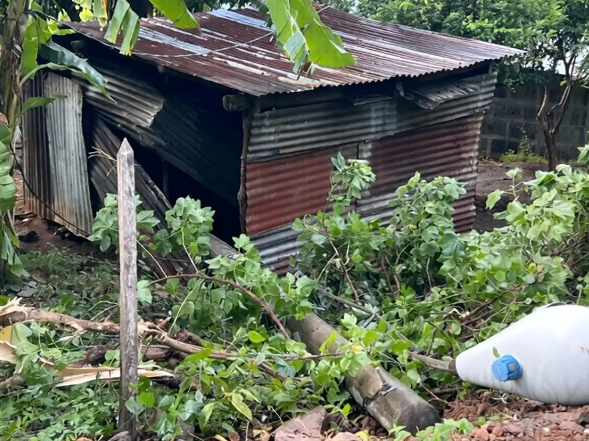 Un camión que hacia un viaje rutinario de forma descontrolada retrocedió, golpeando un paredón, provocando que un poste de energía eléctrica cayera sobre una vivienda de zinc provocando que el techo sacara chispas en la comarca El Quebrantadero, en Juigalpa, Chontales.