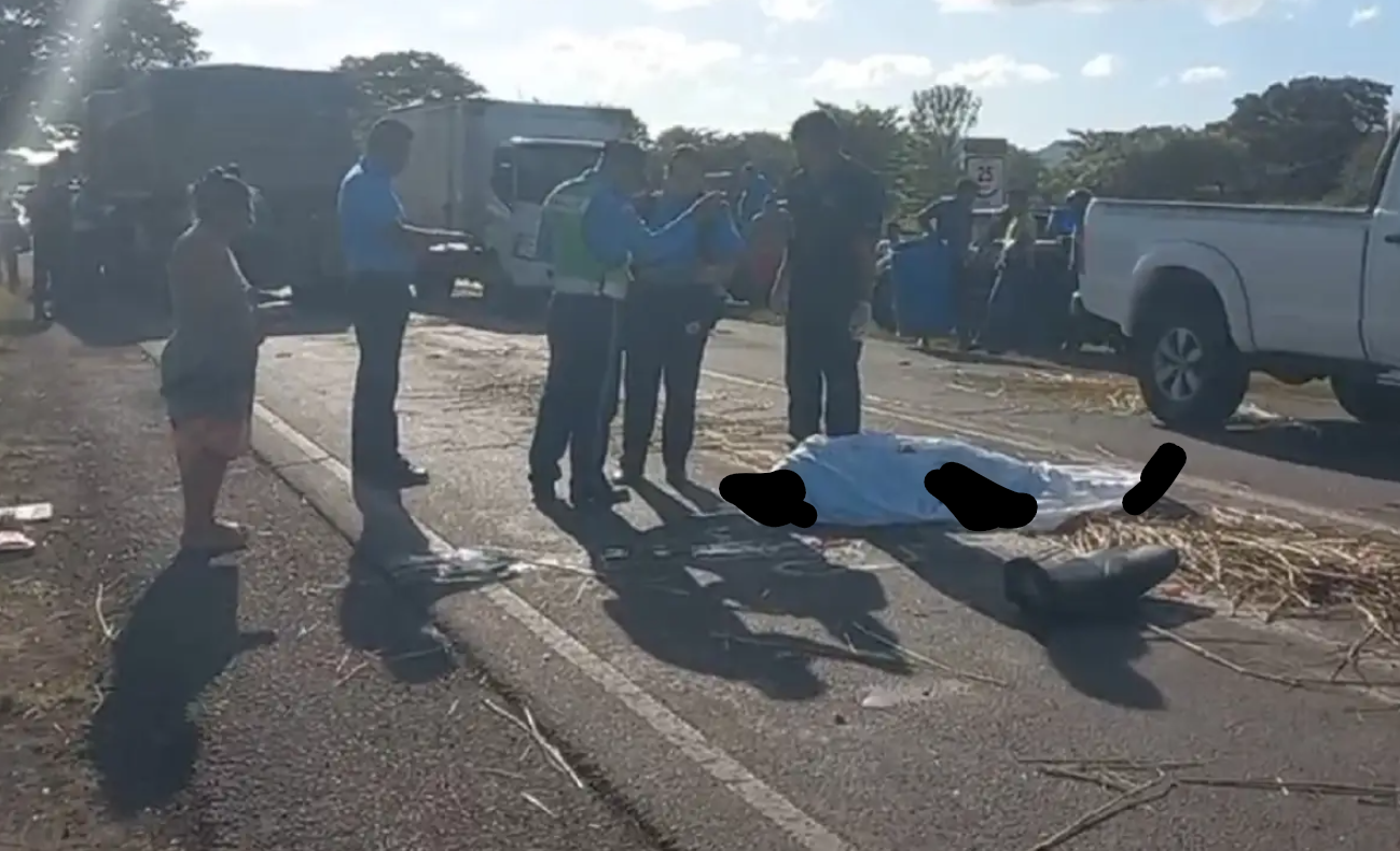 El motociclista Carlos José Leiva López, de 43 años, pirde la vida de forma inmediata tras ser arrollado por un camión de volquete, y después de ser impactado por una camioneta en el municipio de Comalapa, Chontales.
