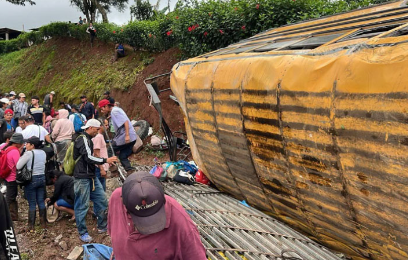 La unidad de transporte, que tiene placas MT 303, era manejada por José Antonio Mairena. De acuerdo a las versiones preliminares, el vehículo presentó desperfectos mecánicos en el sistema de frenos, lo que provocó que en una curva perdiera el control, colisionara y después terminara volcado a la orilla de un guindo.