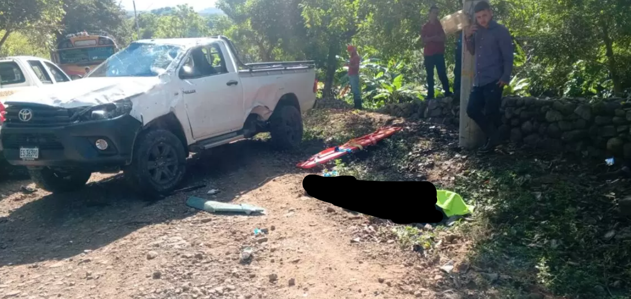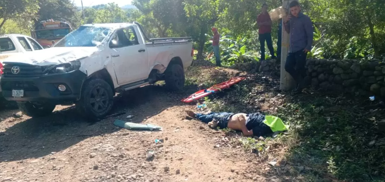 La camioneta marca Toyota Hilux con placas ES 36-390, era manejada por Bismarck Mairena Herrera, de 46 años, quien pierde el control del vehículo por razones desconocidas y después impactar contra un poste, se volcó.