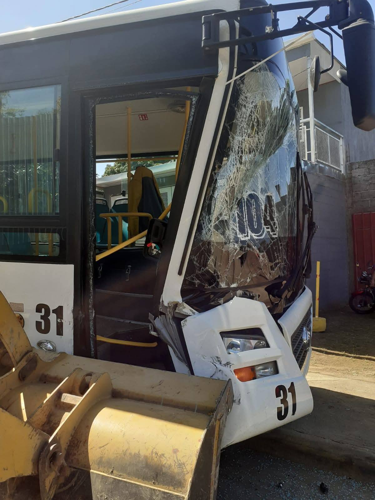 Bus de la ruta 104 impacta contra maquinaria de construcción en su terminal de Managua