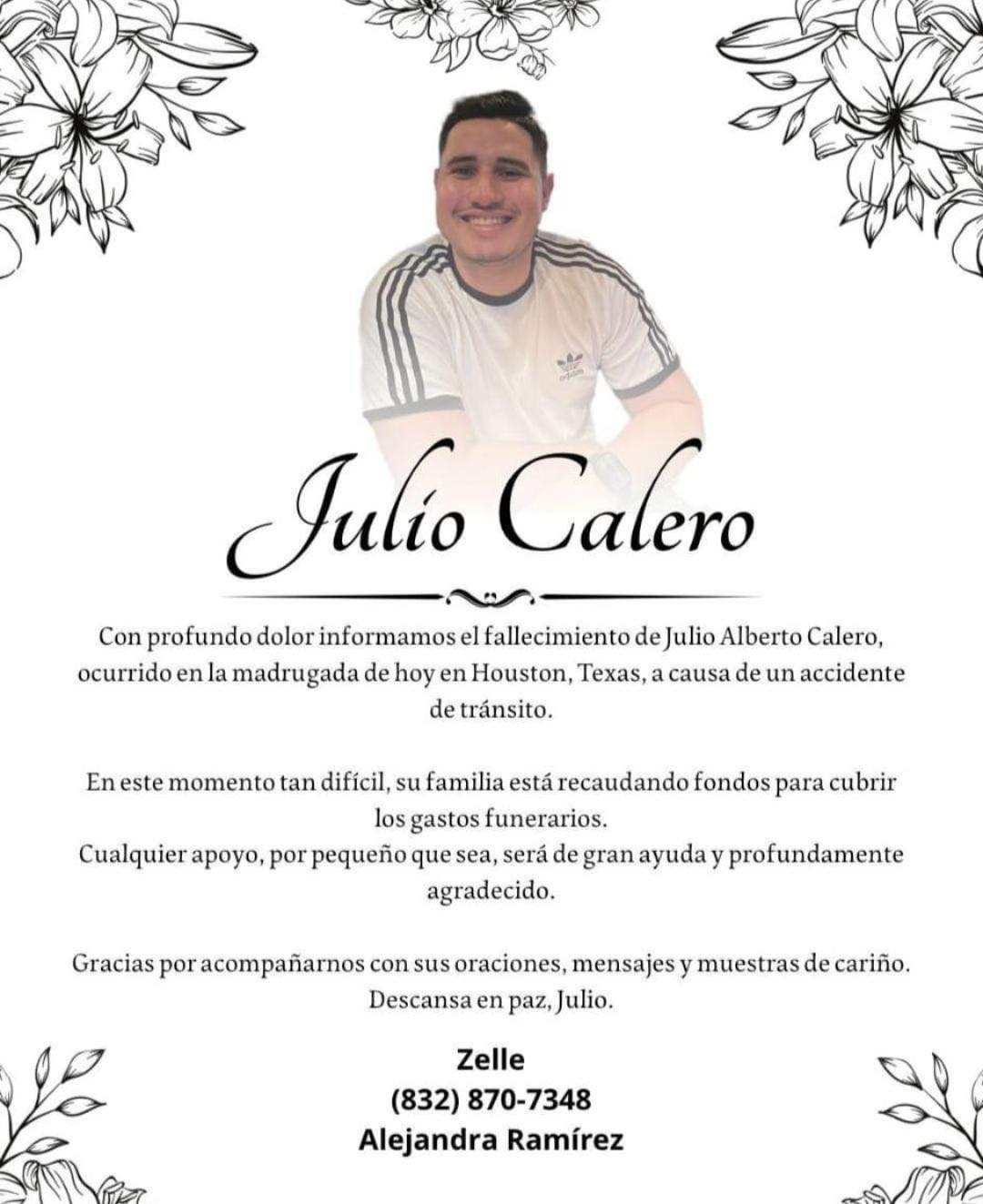 Ha perdido la vida el nicaragüense Julio Alberto Calero Ramírez, de 25 años oriundo de Granada. Pierde la vida tras un accidente de tránsito en el condado de Harris, Houston, Estados Unidos.