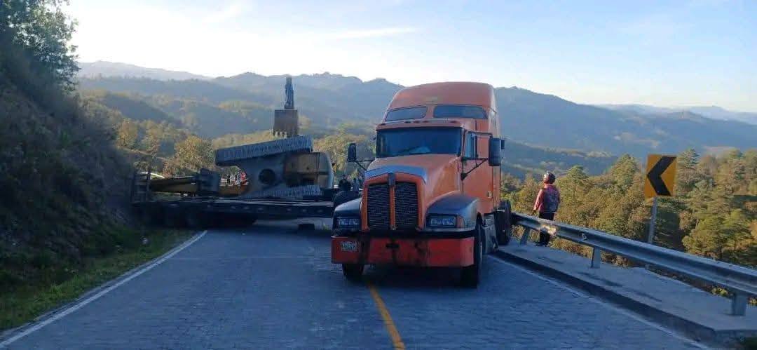 Una rastra que estaba transportando una retroexcavadora tuvo falla mecánica tras quebrarse la barra de transmisión, dejando la vía intransitable, reporta Informativo 24/7 Jinotega.