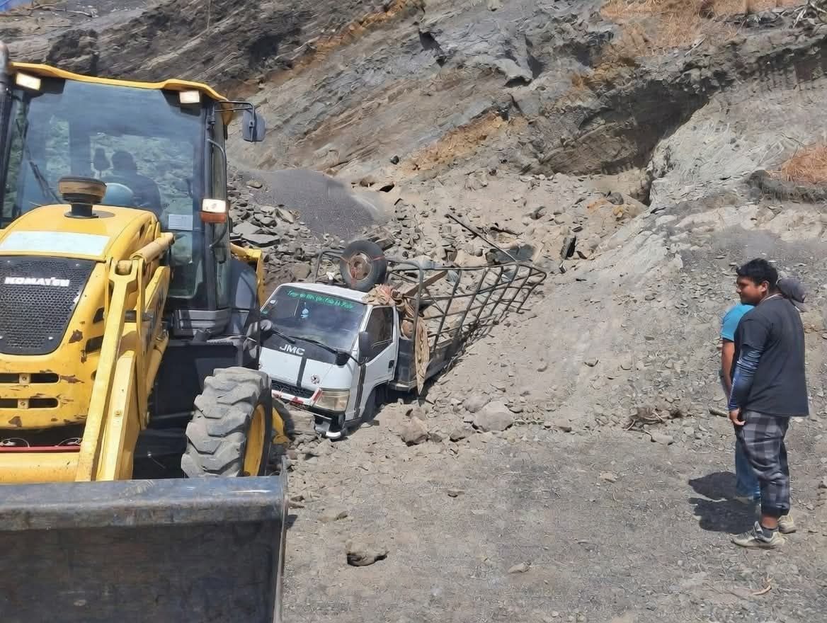 Con lesiones es el resultado en horas de esta mañana de este jueves el conductor de un camioncito y un ayudante después de quedar soterrados con todo y su vehículo tras un derrumbe de arena y tierra.