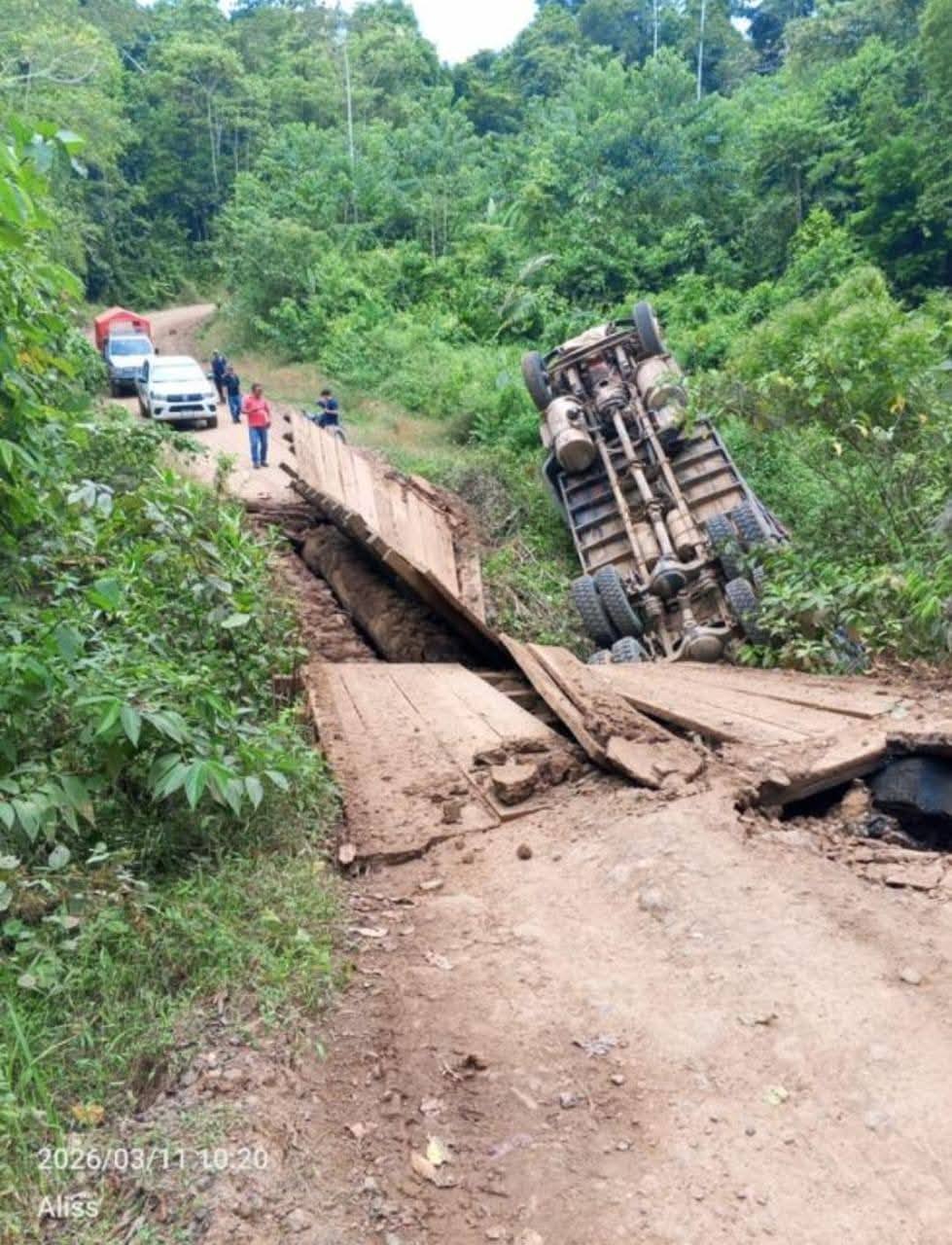 Los vecinos de la zona atribuyeron el percance al mal estado del puente que estaba hecho de tablones con vigas de madera.