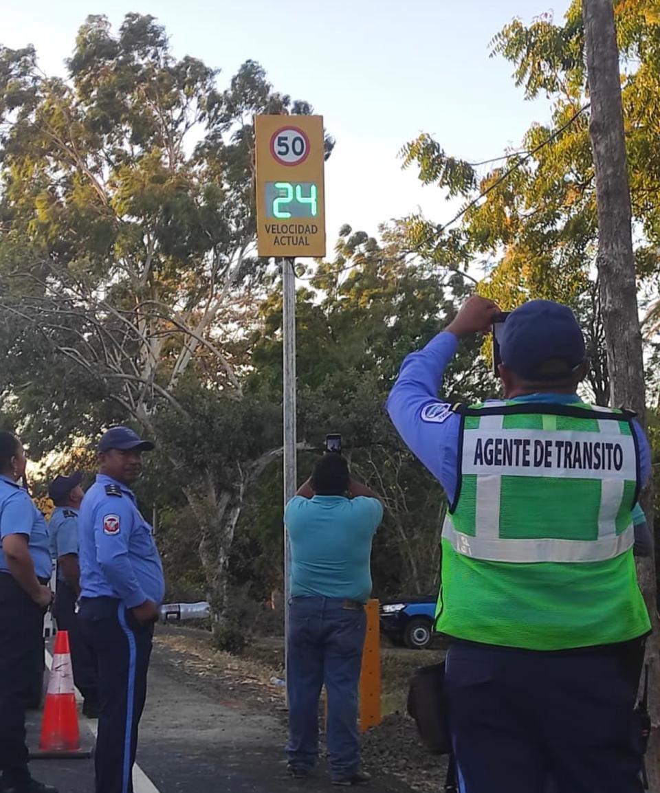 La Policía Nacional ha colocado un velocímetro satelital automático en el tramo de la carretera León-Managua que une los municipios de Nagarote y La Paz Centro, informa el periodista Bismarck Lebron.