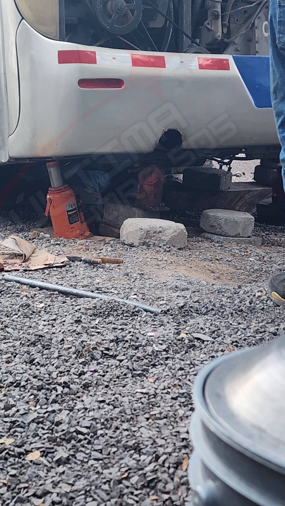 El señor Edgar Ramón Espinoza de 36 años de edad, ha muerto de manera inmediata tras quedar prensado debajo del autobús placa M 444-335 que estaba reparando, en horas de la noche de este sábado.