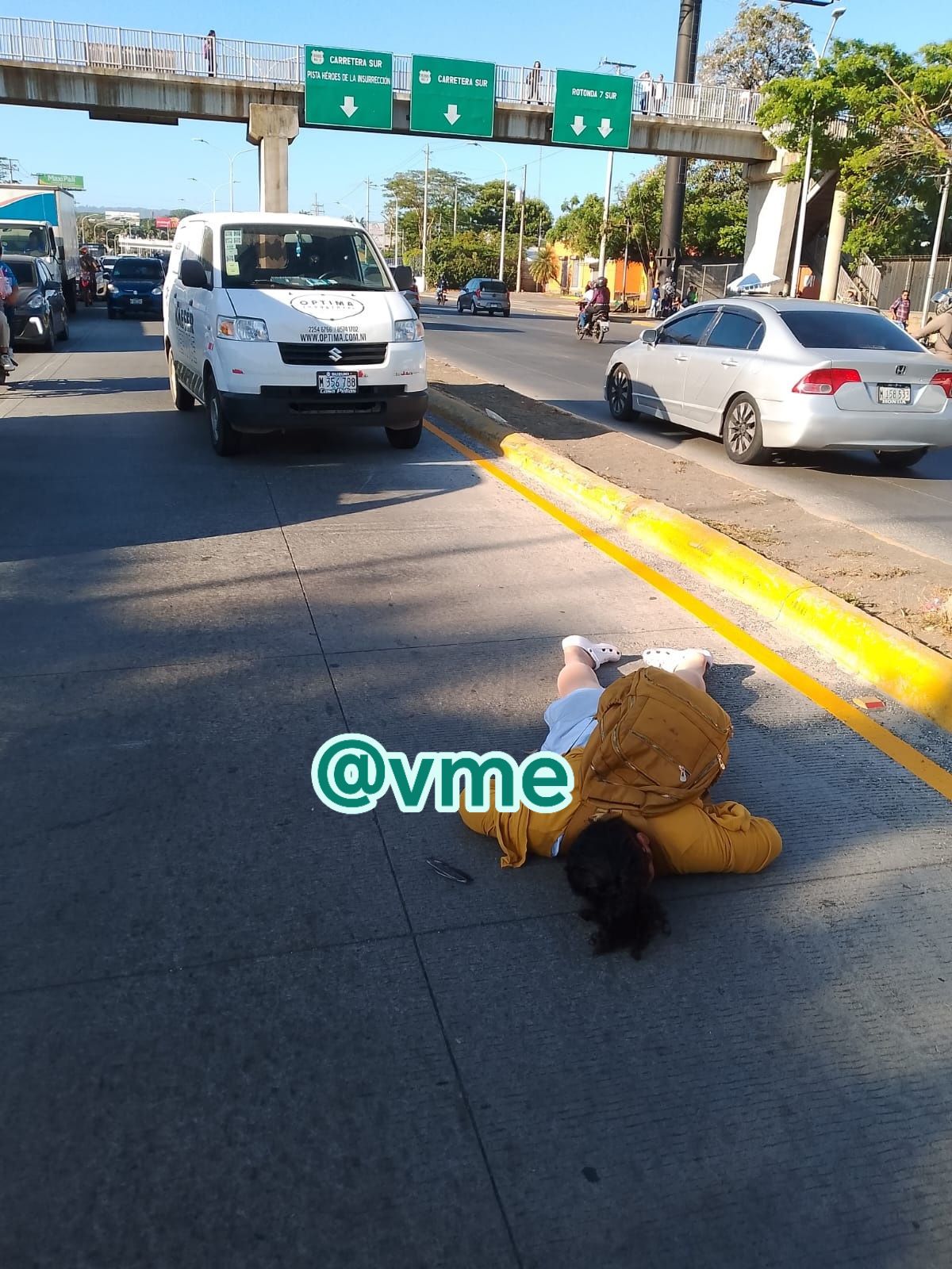 Peatona lesionada en el 7 Sur por intentar cruzar la vía en vez de usar el puente peatonal