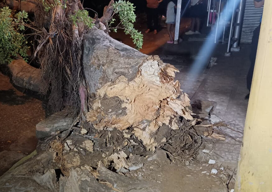 El incidente ocurrió en el local “Antojitos la Danny”, que funciona desde hace tres años. Salazar relató que el fuerte estruendo los alarmó y al salir encontraron las enormes ramas del árbol que destruyeron parte del negocio.