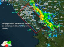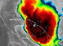 Un Complejo Convectivo de Mesoescala se esta desarrollando sobre el lago de Nicaragua desde las 9pm de este sábado 25 de octubre de los corrientes. Tiene potencial de