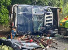 Grandes daños materiales ha dejado en horas de la mañana de este jueves, el vuelco de una rastra que transportaba hierro y perlines. El accidente ocurrió en una