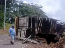 El vuelco de un camión ganadero ha dejado dos personas golpeadas, varios semovientes muertos y bastantes daños materiales, en el sector que se conoce como la vuelta o