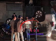 Volcada termina esta camioneta, después de que su conductor la llevará a alta velocidad, sin percatarse de la irresponsabilidad, puesto que pudo haber matado a alguna persona. Antes