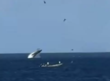 Fue captado preciso momento que gigante ballena sale del agua en Playa Colorado de Tola en Rivas