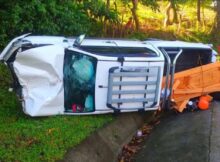 Tres lesionados es el saldo del vuelco de una camioneta, siendo el resultado de intentar aventajar un camión, en una zona angosta de la carretera Mulukukú a Río