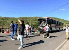 Parte delantera de bus completamente destruida tras fuerte accidente de tránsito en Teustepe
